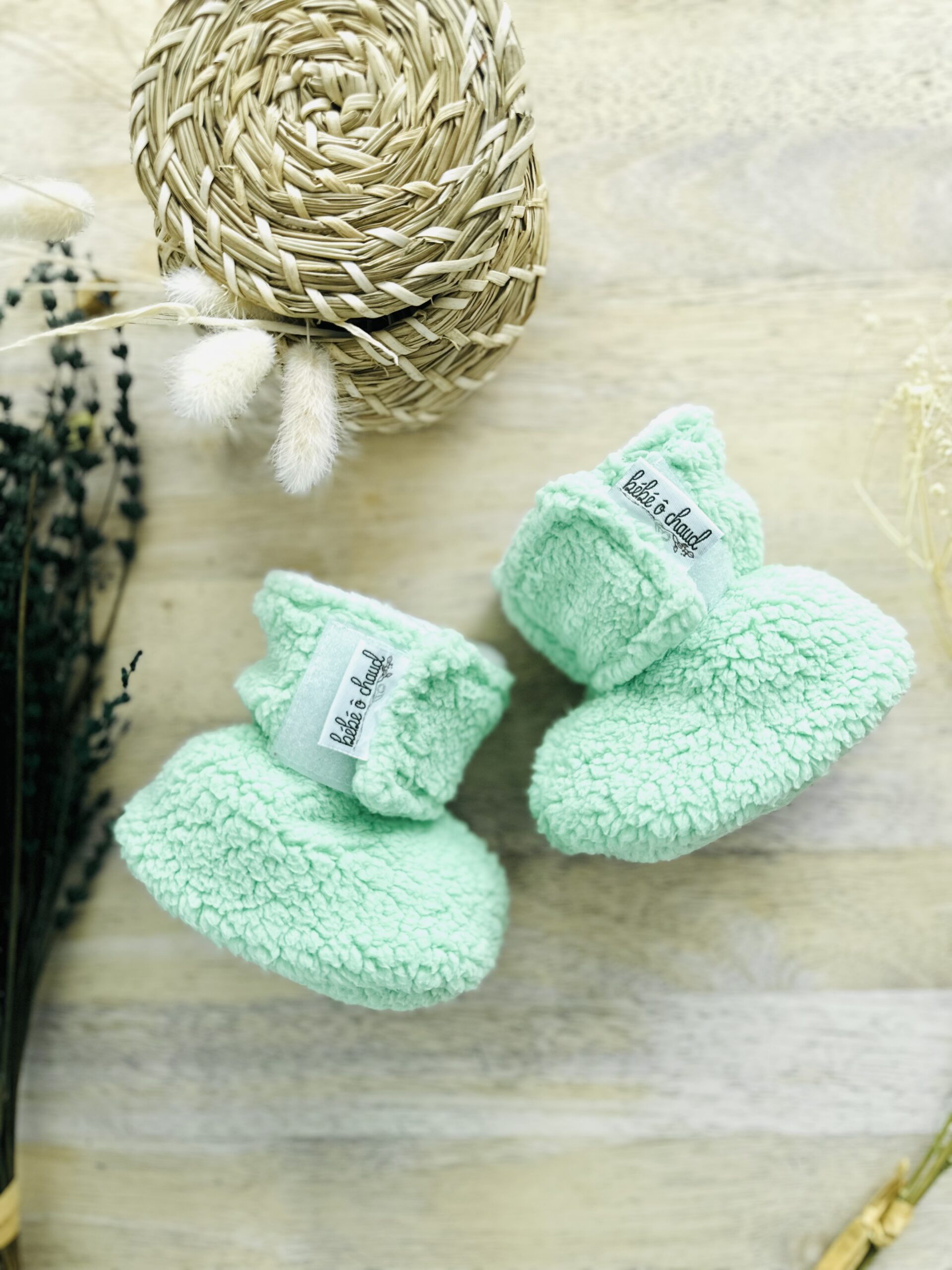 À partir de la grandeur 6-9 mois, les pantoufles Bébé Ô Chaud sont munies d’une semelle souple en suède synthétique.