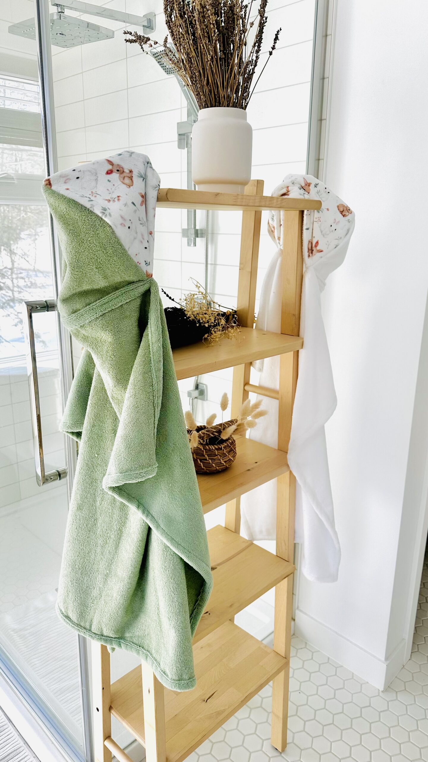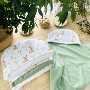 Cette serviette de bain munie d’un capuchon est parfaite pour la sortie de bain de votre enfant.